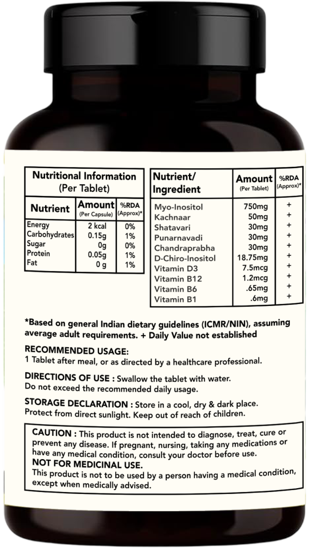 | Key Features : πΈ Supports Cycle Regularity & Ovulation β Clinically validated 40:1 ratio Myo-Inositol + D-Chiro-Inositol restores hormonal rhythm and improves ovulatory function. πͺ Manages Bloating & Cystic Concerns β Varanadi & Punarnavadi Kashayam + Kachnaar support digestion, reduce inflammation, and address ovarian cysts naturally. π§βοΈ Balances Hormones & Mood β Chandraprabha Vati + B-Vitamins help manage androgens, hormonal acne, and mood swings. π Boosts Energy & Metabolism β Vitamin D3, B12, B6, B1 correct common deficiencies in PCOS women, supporting energy and metabolic health. β Trusted & Safe β Plant-based actives, FSSAI compliant, vegetarian capsules, no added sugar or preservatives. Product Description (Mobile Friendly): PCOS isnβt just about periods, itβs about hormones, skin, energy, and confidence. Aantra PCOS Care is designed to address these struggles holistically, combining science-backed inositol therapy with time-tested plant extracts and essential vitamins. β Myo-Inositol (750 mg) + D-Chiro-Inositol (18.75 mg) β gold standard ratio for hormonal balance, ovulation, and insulin sensitivity. β Varanadi & Punarnavadi Kashayam + Kachnaar β support digestion, reduce bloating, and help manage cystic concerns. β Chandraprabha Vati β balances hormones and urinary health. β Vitamin D3 + B-Vitamins β restore energy, mood, and metabolic function often affected by PCOS. π‘ Unlike generic inositol-only tablets, Aantra PCOS Care is an all-in-one formula that works across cycle regularity, hormone balance, energy, and skin health. β¨ Balance Hormones. Regain Confidence. Live Energized. |
