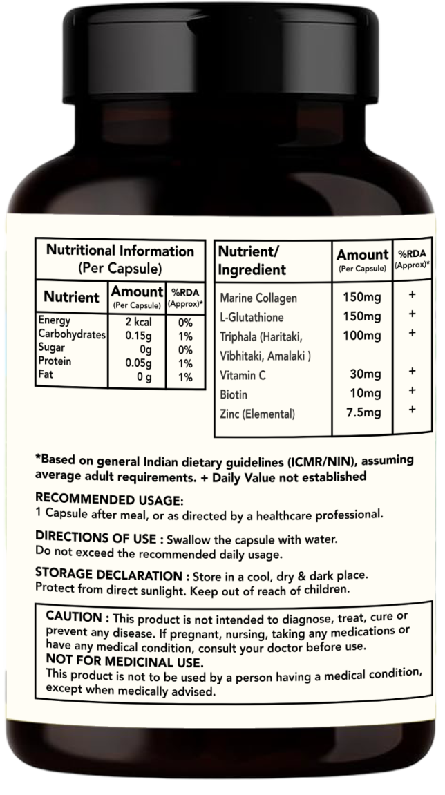✅ Trusted & Safe – Vegetarian, GMP certified, FSSAI compliant — crafted for daily inside-out beauty support. Product Description :